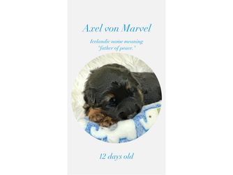 “Puppies come with Limited AKC Registration, Health Guarantee, Veterinary Health Check, Age-Appropriate Vaccinations/De-worming, Home Again Microchip, ENS and ESI Training, and Lifetime Support. Deposit is required to reserve a puppy once pregnancy is confirmed. If selected litter does not produce a suitable puppy or circumstances change, deposit may be transferred to another pairing.”