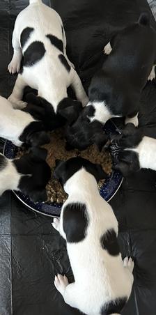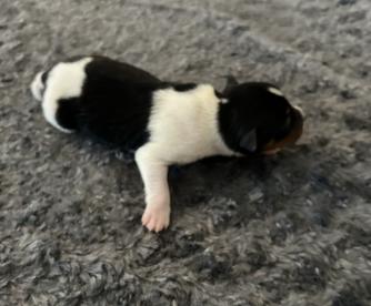 Their wellness appointment with vet is being scheduled for mid September. All puppy are same price except for the Tuxedo male. He is the Breeders pick of the litter.”