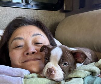 Since we had these two Bostons, we learned this breed is funny, smart, loyal, high energy, my Bostons really helped me get out of pretty bad depression. We decided to breed them and bring joy to more people, families like us.
