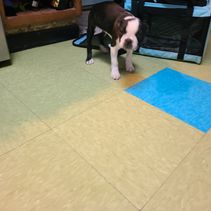 Our puppies include brindle and white and black and white. Colors will vary depending on the parent dogs.