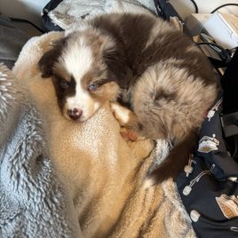 My new mini American Shepherd puppy and I are having a blast! Naturally I fell in love with the puppy photo that was posted online, and was able to ask the breeder tons of questions plus get a video and a new photo that day. Neila was spot on in describing her temperament and I feel we are well matched. I have renamed her “Zinnia” and she is such a sweet dog - quite the ham when any other humans are around to pay attention to her! I was able to meet the gorgeous and sweet parent dogs and I will be happy if Zinni grows up to be any combination of the two.