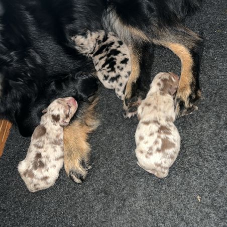 Neila was so wonderful to work with. She was very quick to respond to my many messages and sent several extra pictures and videos of my sweet boy. My puppy (now named Indy 🤠) was 3 months old when I adopted him and he was potty and crate trained already! Turns out he is the BEST boy and I truly lucked out finding him. Everyone comments that I hit the jackpot with him! He loves people and other dogs and adores kids. He is such a sweetheart and honestly my dream dog. I am beyond grateful for this whole experience and recommend Neila to anyone looking for this breed! 🖤🤎🤍