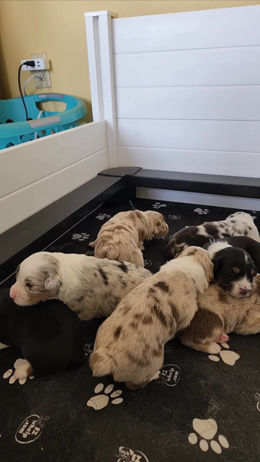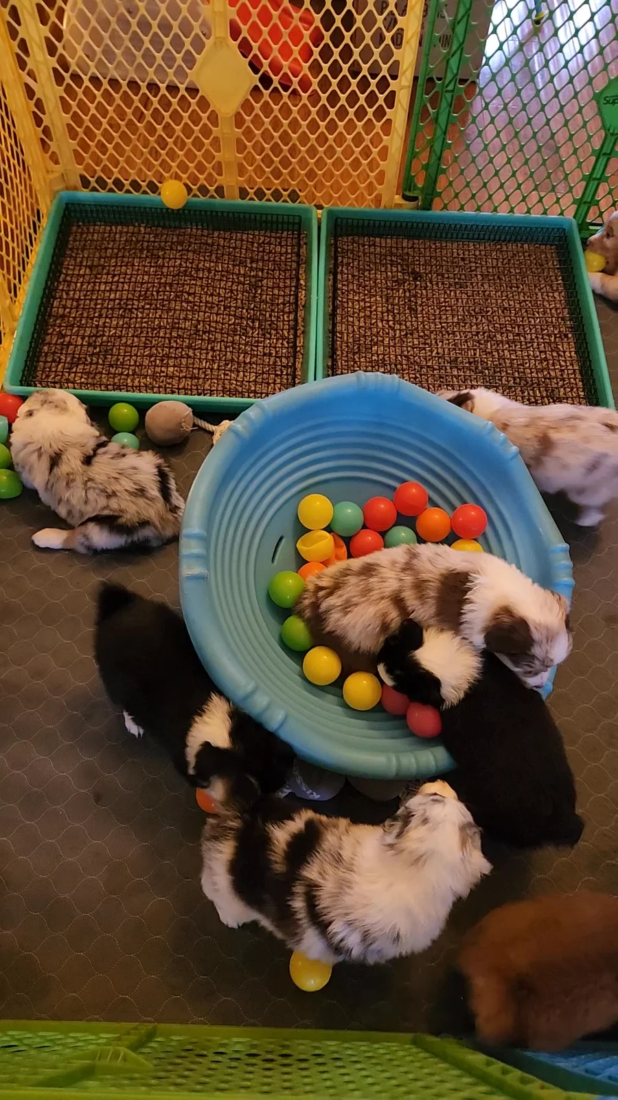 Our puppies include red merle, blue merle, black tri-color, and red tri-color. Colors will vary depending on the parent dogs.