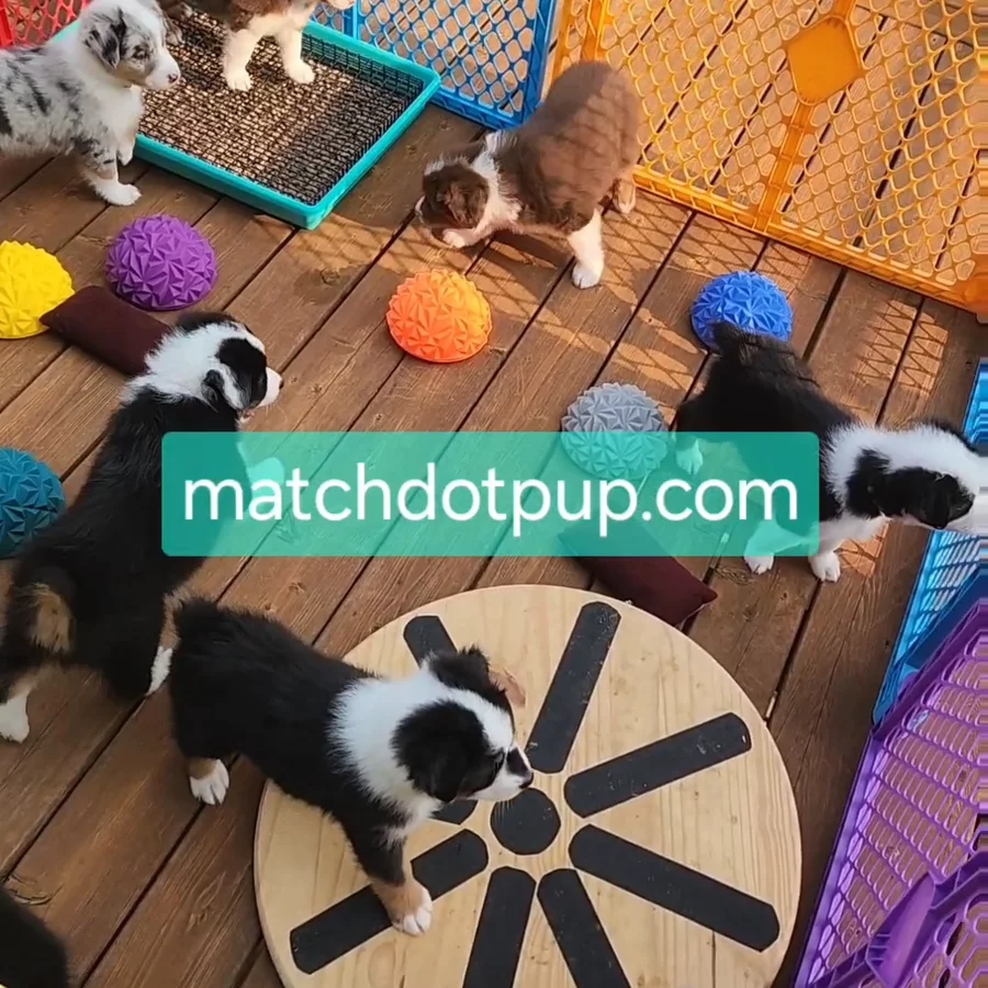 I'm Lori O., the breeder behind Match Dot Pup located in Pittsville, WI. We focus on breeding AKC Australian Shepherds that possess excellent temperaments, top health, and high intelligence. We follow an advanced curriculum for raising puppies, beginning when they are only three days old. We place great importance on conducting thorough evaluations to assist our clients in making the most suitable "match" that considers both their requirements and the well-being of the puppies.