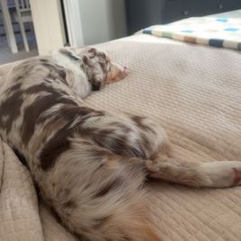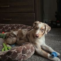 Lori brought us our 3rd Australian Shepherd in the past 40 years… and what a gem he is! Working with Lori was super. She keeps her puppies a little longer to put them through a puppy “Get Started” program. AND YOU CAN TELL IT!!!! Vincent was born on June 18,2025… we got him mid September. All of his medical procedures were up to date and provided for our vet. His first check up here with our vet received 5 Gold Stars for his condition starting out with them. He has nearly doubled in weight since then. Vinney’s personality… intelligence… sweetness… and companionship are AWESOME!!! Lori’s love for her babies shows in the pleasant nature of her puppies!!!!!