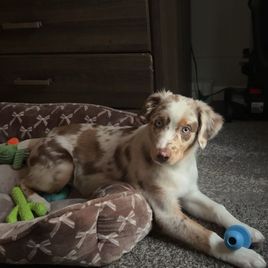 I spent considerable time looking at Aussies breeders on Good Dog and found Lori and Match-Dot-Pup. I read through the reviews, looked at her dogs, pups and all the videos she posted and knew straightaway that she was the breeder for us. I reached out, inquiring about Imani, and specifically what I was looking for as I have a specific need for a service dog. We discussed further training that Lori would do with Imani to get her in the best place possible for her to start working with me in service. The torture was the waiting, but it sure paid off. Lori worked with Imani extensively, and she completed her ACK Good Dog and Urban Good Dog training (with certificates). The bonus command for me has been the deep pressure therapy, which has been amazing. Imani stays by my side, listens, does what she is asked and excels in all that she’s been tasked with. I could not have asked for a better, sweeter, kinder dog. I worked with Lori over 7 months, and got Imani when she was 14 months old and she was so worth the wait. Lori is so knowledgeable of Aussies, and she clearly has a love for what she does. She’s thorough, conscientious, thoughtful and just a pleasure to talk with - in fact, our many conversations felt like we were old friends. And she follows up, and is responsive to every question I’ve had. If I ever had a need (I always have a want) for another dog, I wouldn’t hesitate to work with Lori again. To demonstrate how thoughtful she is, because I got Imani when she was older, she had already had her first heat. Lori contacted me to ask if I’d like to have Imani spayed before coming out to California. The cost was considerably cheaper in Wisconsin - Lori arranged that with her longtime vet and took great care of Imani after her surgery. She went above and beyond. Once Imani came to us, we have worked with the local chapter of the AKC just to reenforce Lori’s training. Our trainer has mentioned several times what a great dog Imani is and she was stunned that a dog so young had completed both AKC trainings. I am beyond thrilled with Imani and she’s just a wonderful addition to our family, and her ability and capacity as a service dog has been exactly what I need and had hoped for. I will forever be grateful to Lori and while it may sound extreme, because I had a need for a service dog, and all the work she put into Imani, Lori has changed my life for the better. Thank you Lori!