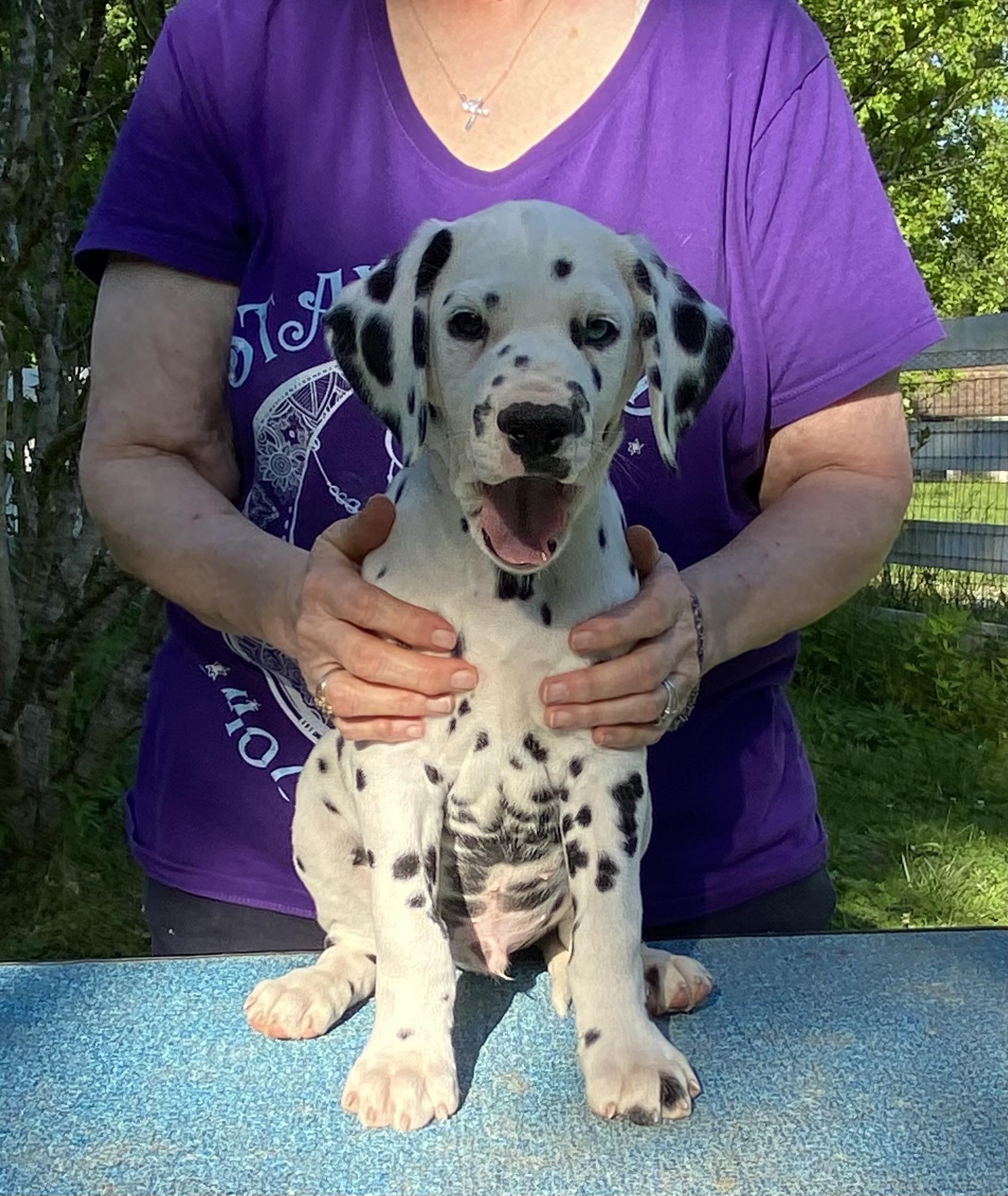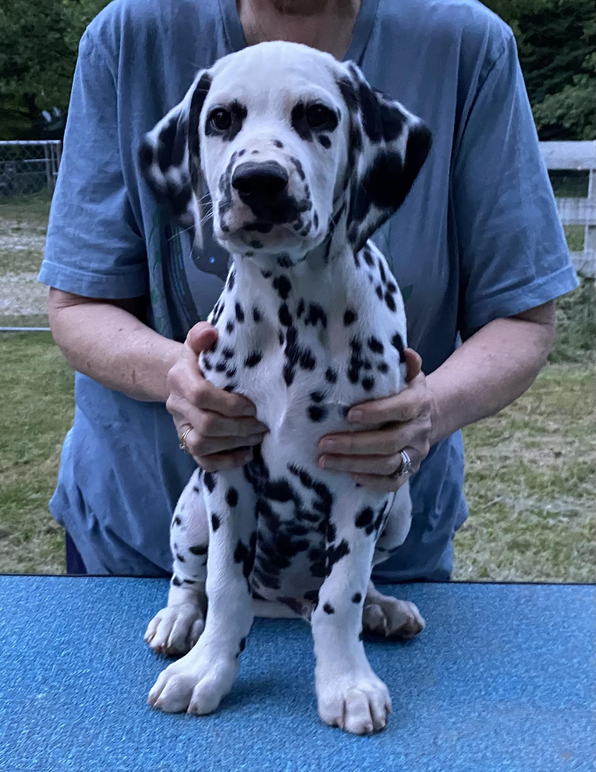 I'm Jan L., the breeder behind Matchless Dalmatians located in Martinsville, IN. We breed for show/companion. All parents have to pass their health testing and have CHIC numbers to prove it.