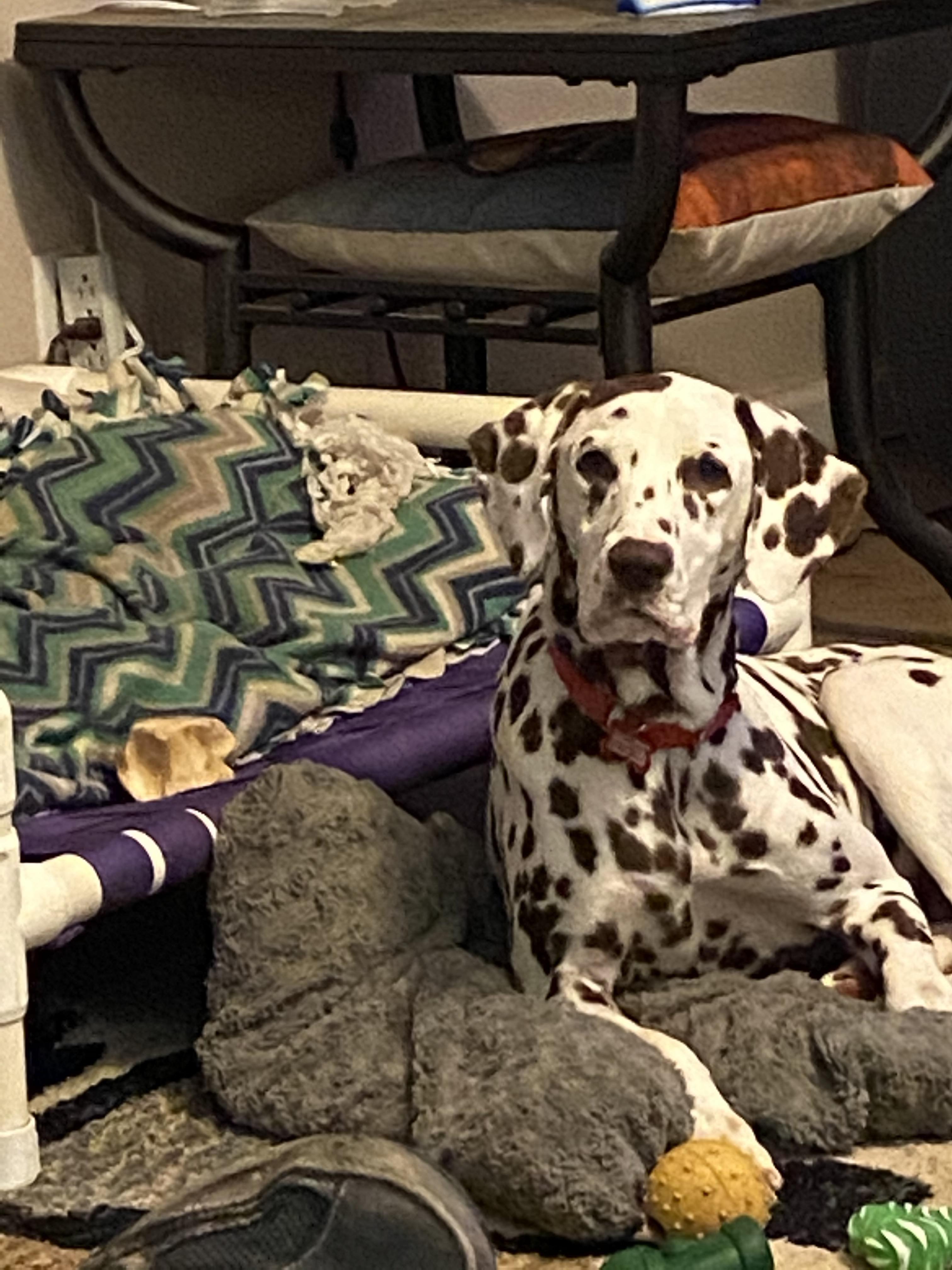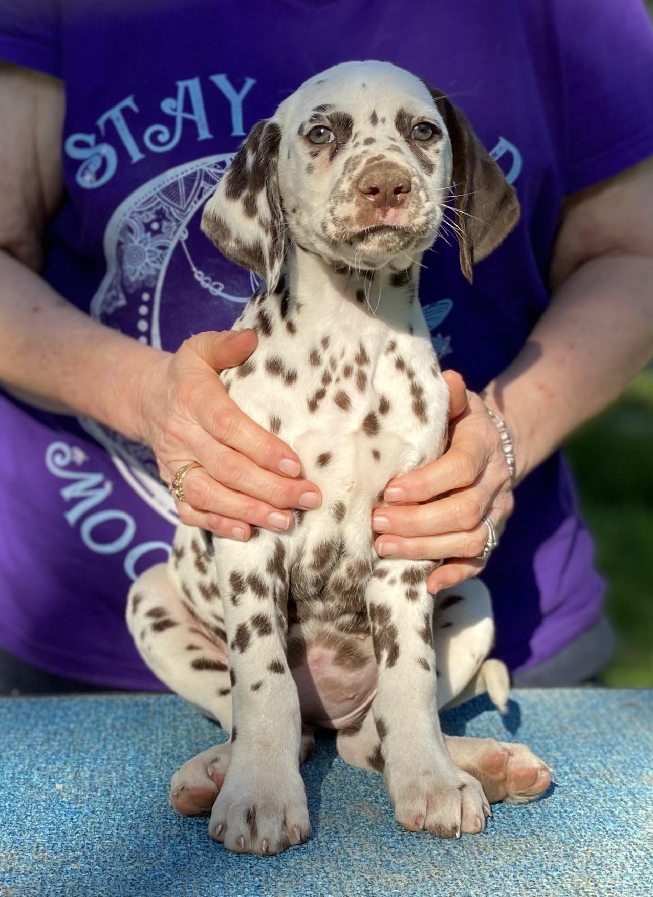 Marlo is one of the nicest Dals ever. She loves people and is always very accepting of anyone visiting her puppies.