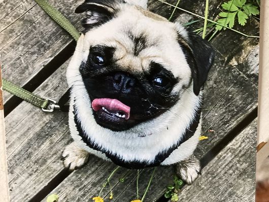 Vinnie is a male Pug. Carefully selected as a great representative of his breed, Maureen decided to make him part of their program. Maureen has passed Good Dog’s screening process, which involved a review of their breeding practices, environment, and the mental and physical health of their dogs.