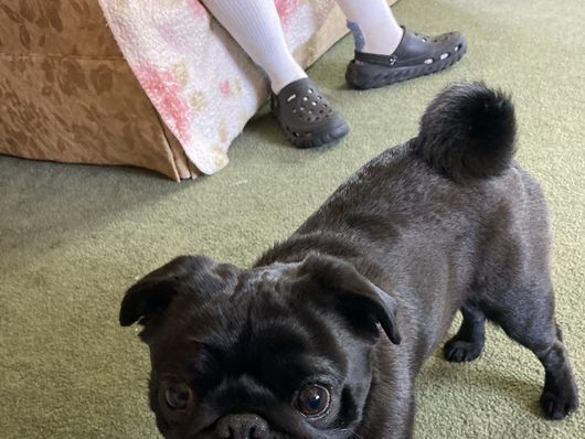 Windy is a female Pug. Carefully selected as a great representative of her breed, Maureen decided to make her part of their program. Maureen has passed Good Dog’s screening process, which involved a review of their breeding practices, environment, and the mental and physical health of their dogs.
