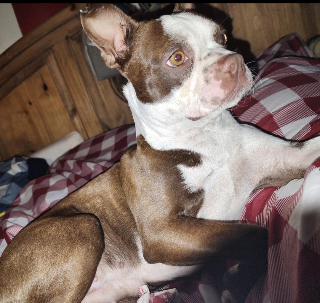Memphis is a female Boston Terrier. Carefully selected as a great representative of her breed, Amy decided to make her part of their program. Amy has passed Good Dog’s screening process, which involved a review of their breeding practices, environment, and the mental and physical health of their dogs.