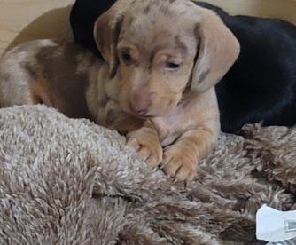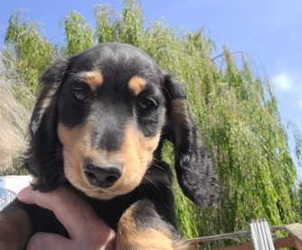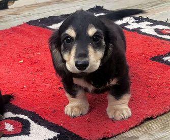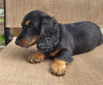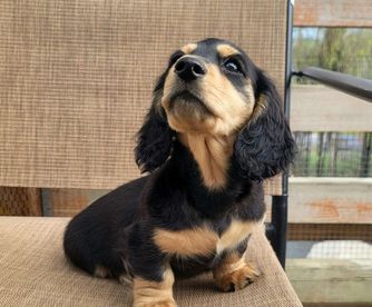 Dachshund puppies have longhaired coats. Coat types may vary depending on the parent dogs.