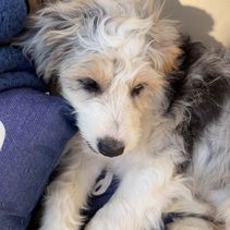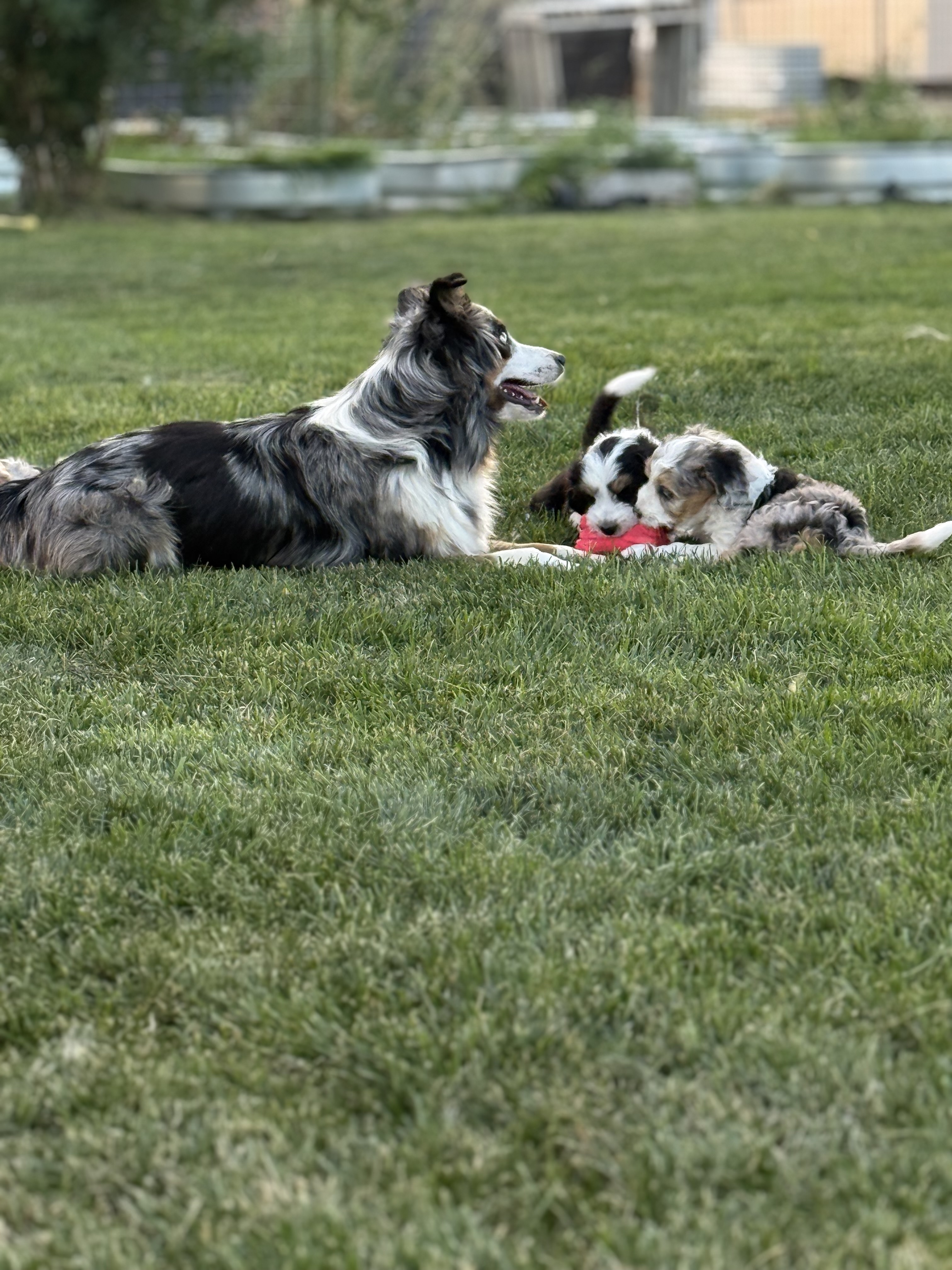 Maverick is a gentle and loving dad who delights in spending time with his family. He enjoys being groomed, playing in the yard, and going for walks. Maverick is an easy keeper, making him a joy to care for, and he absolutely adores his puppies. Maverick especially loves being around kids and interacting with the farm animals, showing a natural gentleness and curiosity that makes him a favorite among both children and animals. His best qualities include loyalty, friendliness, intelligence, and a calm temperament, which make him a wonderful companion and an exceptional father to his pups