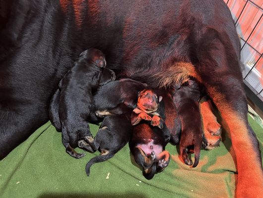 Cocoa is a female Rottweiler. Carefully selected as a great representative of her breed, Tierra decided to make her part of their program. Tierra has passed Good Dog’s screening process, which involved a review of their breeding practices, environment, and the mental and physical health of their dogs.