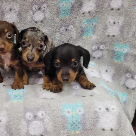 Our Dachshund puppies include smooth, wirehaired, and longhaired coat varieties. Chihuahua puppies include smooth and long coat varieties. Coat types may vary depending on the parent dogs.