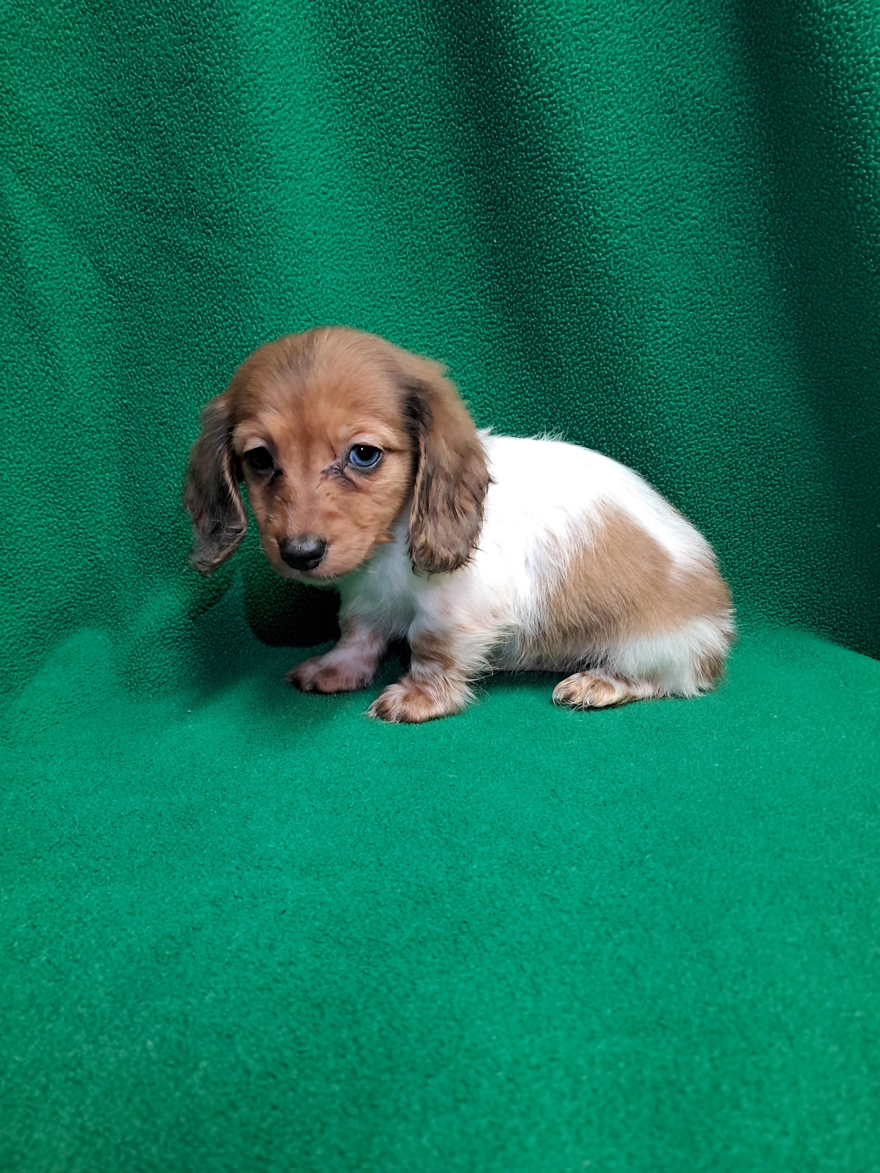 Our Dachshund puppies include sable, piebald, cream, red, chocolate, chocolate and tan, black and tan, and dapple. Chihuahua puppies include black, fawn, silver, chocolate and tan, blue merle, and black and tan. Colors will vary depending on the parent dogs.