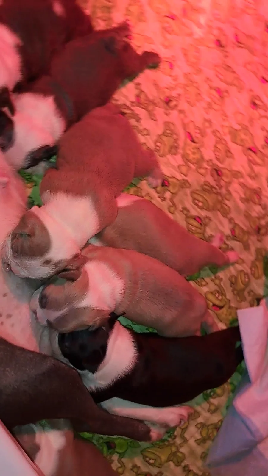 These little ones are doing fantastic. They are all walking and growing. They have already started using the potty pad. They currently are currently each finding their little barks. It is so fun watching them play. They don't have teeth yet but do enjoy gumming eachother.