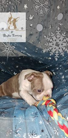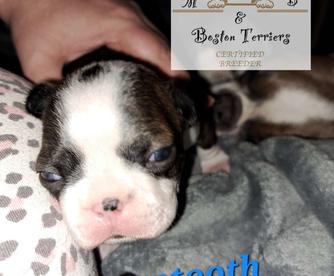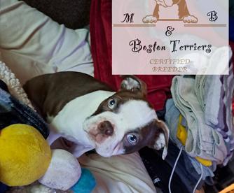 I'm Miranda H., the breeder behind M&Bs Boston Terriers located in Colorado Springs, CO. We are proud to offer our beautiful Boston Terrier puppies to loving homes! Our dogs are healthy and have great temperaments. We are dedicated to always providing our buyers and our puppies with a positive experience, which includes remaining committed to responsible practices when it comes to breeding, training, and rehoming our puppies. All puppies are raised underfoot 24/7 with a no paws to outside ground policy.
