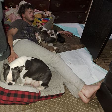 Many many years ago when I was little I met my first Boston terrier. He was the sweetest lil boy. Since that day I was obsessed lol. When I grew up I promised myself I would have one. I eventually found a sweet boy of my own. Later I was at a show and came across someone willing to mentor. He took me under his wing and for 3 yrs I learned the ins and outs of BT breeding. I've been doing it ever since and can not see that changing anytime soon.