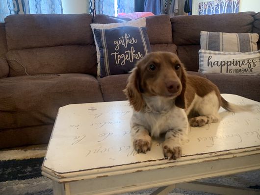We were very pleased with Mary Beth and how well we were treated. We have had dachshunds for over 20 years and always in pairs. This last 2 we had were brothers. Unfortunately, we lost one unexpectedly at the age of 5 in Oct. His death was horrible for us and his brother took the loss very hard and stopped eating. We thought we might lose him as bad as he was mourning. After a long talk with my vet, we decided to get him a friend. I reached out to Mary Beth about one of her puppies and explained the situation. She told me the one I had chosen had quite the personality and sounded like she would fit in with him. She was so right. He took to her instantly and they have become the best of friends. So not only is my boy happy again, we have this precious little girl in our family now that completes us again. We are so grateful to Mary Beth for listening to our story and helping us fill the void in our family. We would highly recommend Mary Beth, her kindness made our situation so much easier.