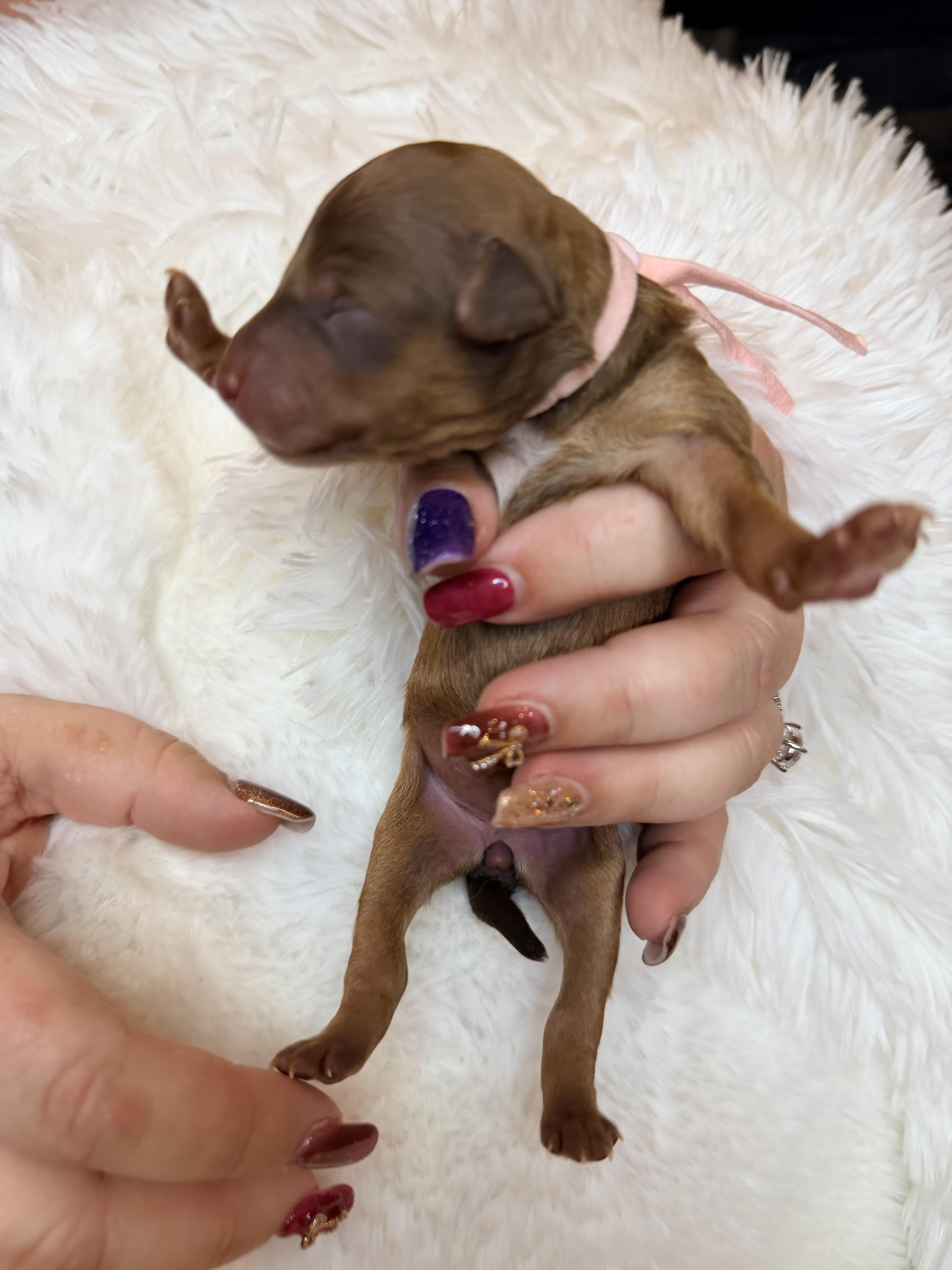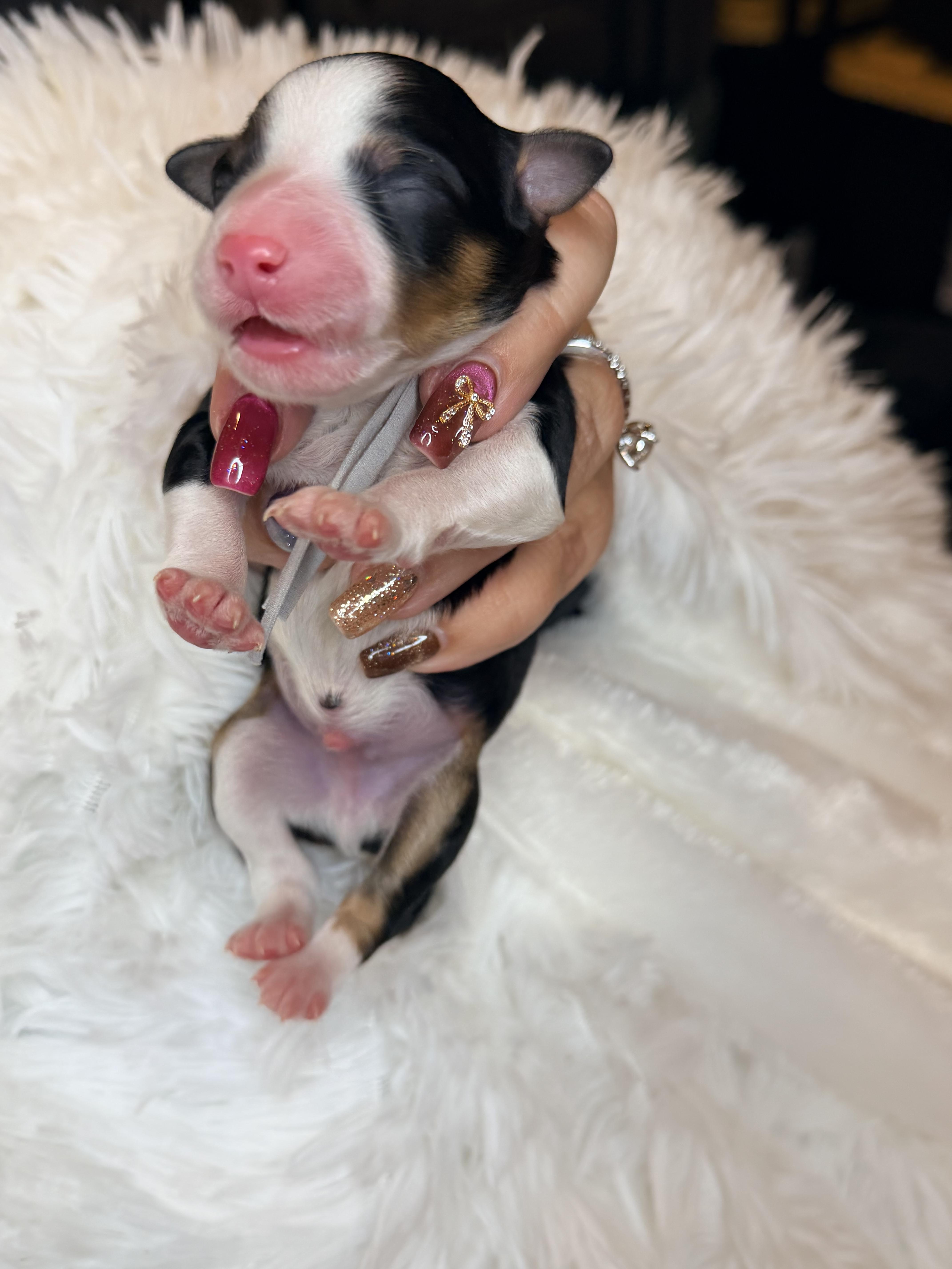 Puppy prices include a $500 non-refundable deposit and between $2,700 - $3,500 final payment, before taxes & fees.