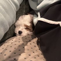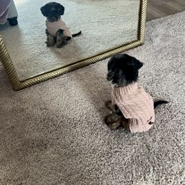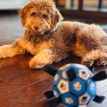 This is my only experience working with a breeder and it couldn’t have gone better! First of all Archie came to us properly socialized, crate trained and potty trained ready. He has adjusted just beautifully and is happy and at ease with us like that. We are so in love with him and he has made our family complete. I want to also say that Buffy flew with Archie from Texas to our hometown for pickup. That was a life saver as we were not in a position to get him. I would 💯 recommend Mcdoodles. We will be back 🙈😂