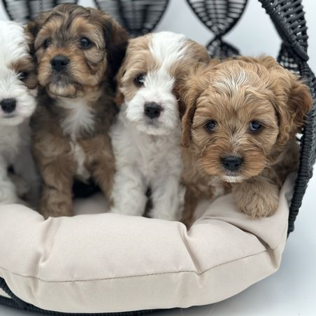 Our Aussiedoodle puppies include toy and mini sizes. Cavapoo puppies include toy and miniature sizes. Sizes will vary depending on the parent dogs.