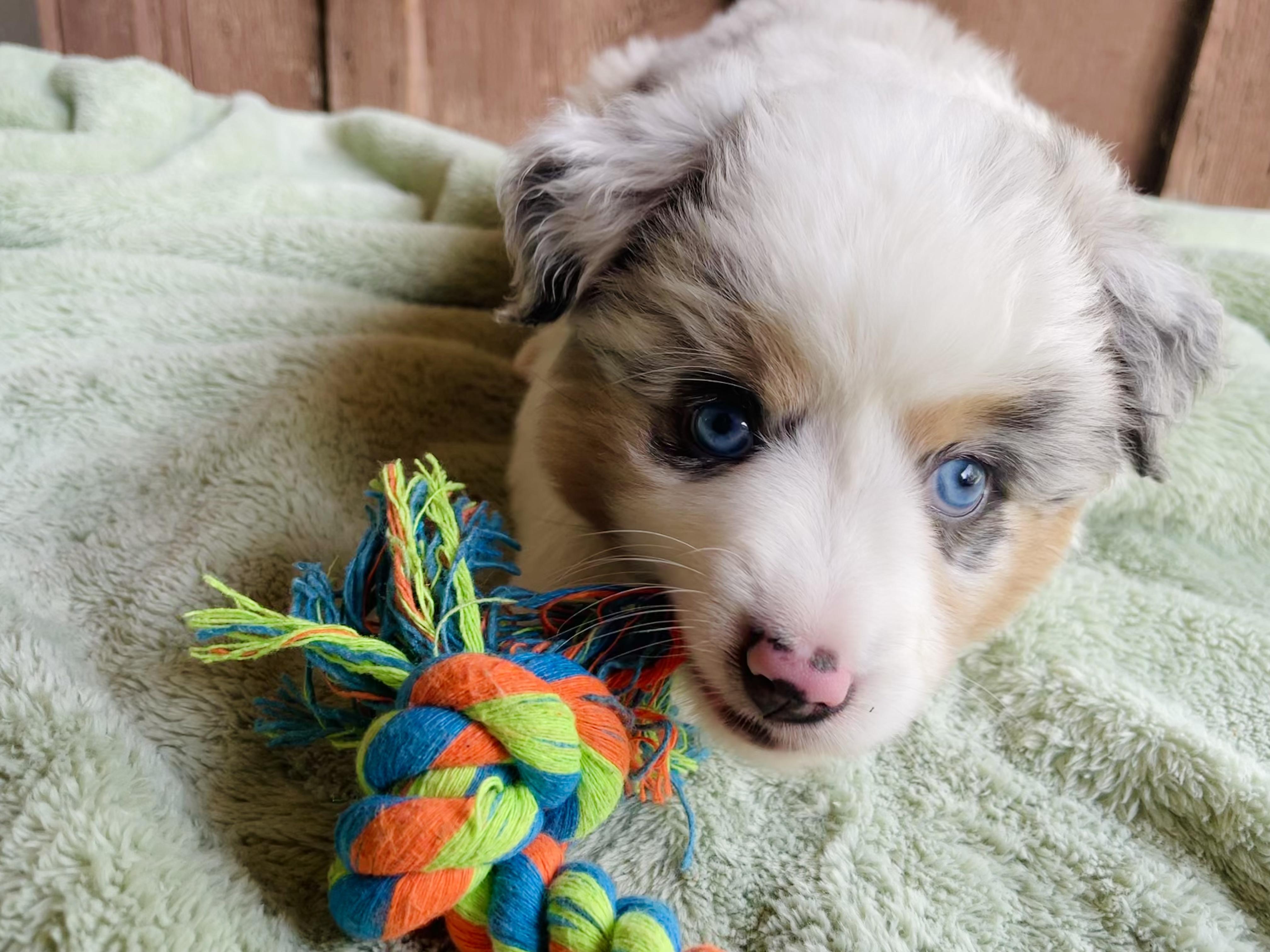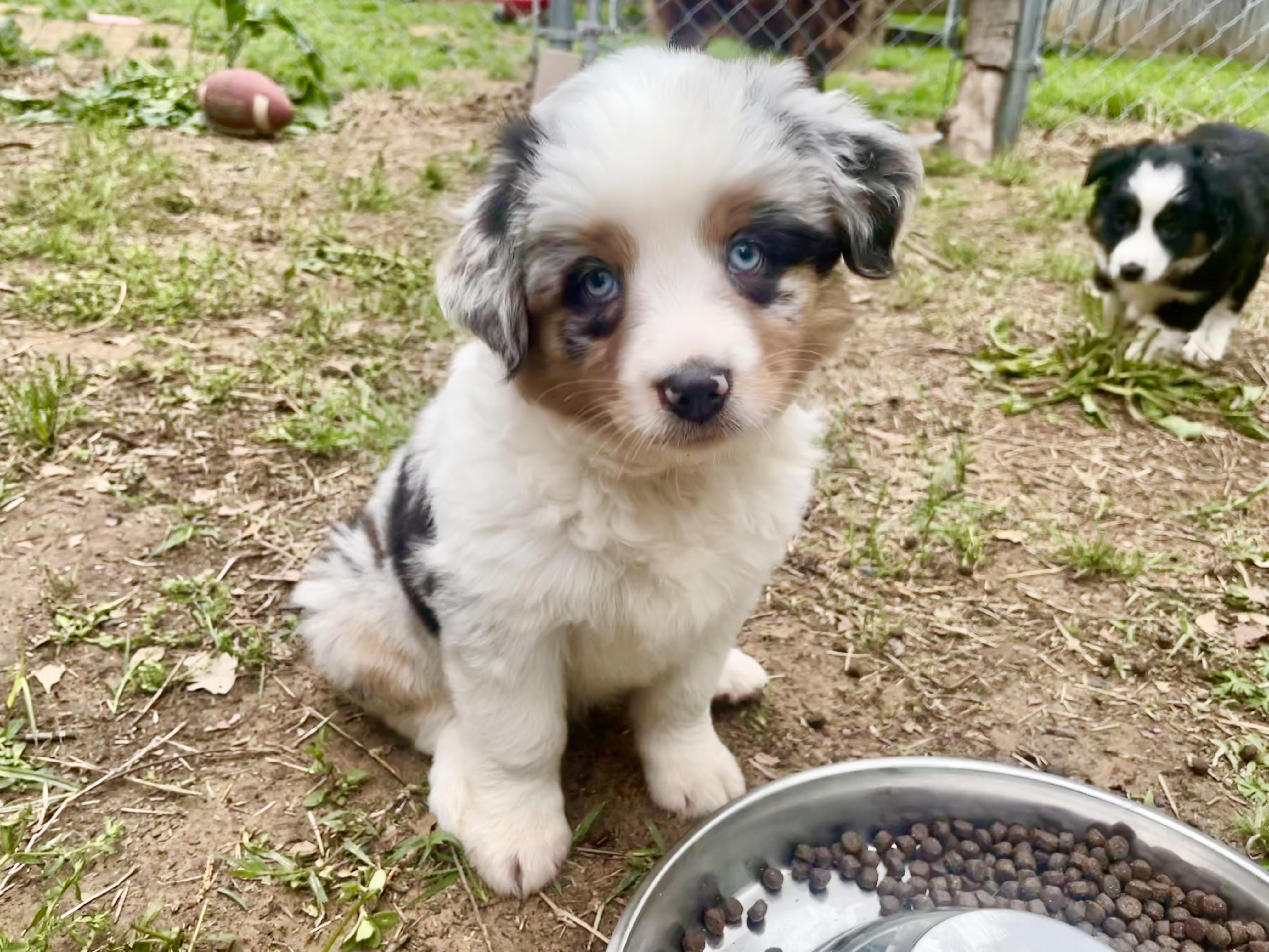 Our puppies include blue merle, red merle, red, and black. Colors will vary depending on the parent dogs.