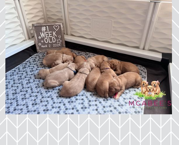I'm Ashley M., the breeder behind McAbee’s Golden Retrievers located in Belton, SC. Our dogs are bred to be excellent family companions as well great working dogs. We strive for amazing health and temperament with an overall focus on conformation, athleticism, and intelligence. Golden Retrievers are a very intelligent and unique breeds, and we are excited to educate others on care and all of their amazing qualities! Our main goal is to produce healthy family pets and with excellent health tested lines.