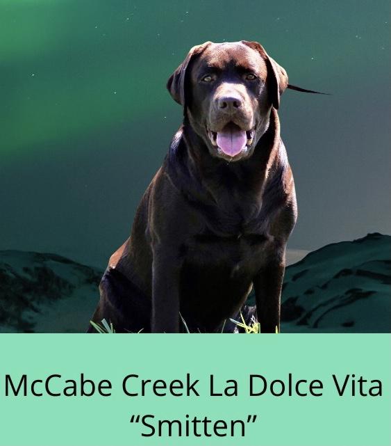 Smitten is a female Labrador Retriever. Carefully selected as a great representative of her breed, Sue decided to make her part of their program. Sue has passed Good Dog’s screening process, which involved a review of their breeding practices, environment, and the mental and physical health of their dogs.