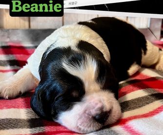 Our Dachshund puppies include piebald, black, fawn (isabella) and tan, chocolate and tan, and blue and tan. English Springer Spaniel puppies include tri-roan, liver white and roan, and black and white. Colors will vary depending on the parent dogs.