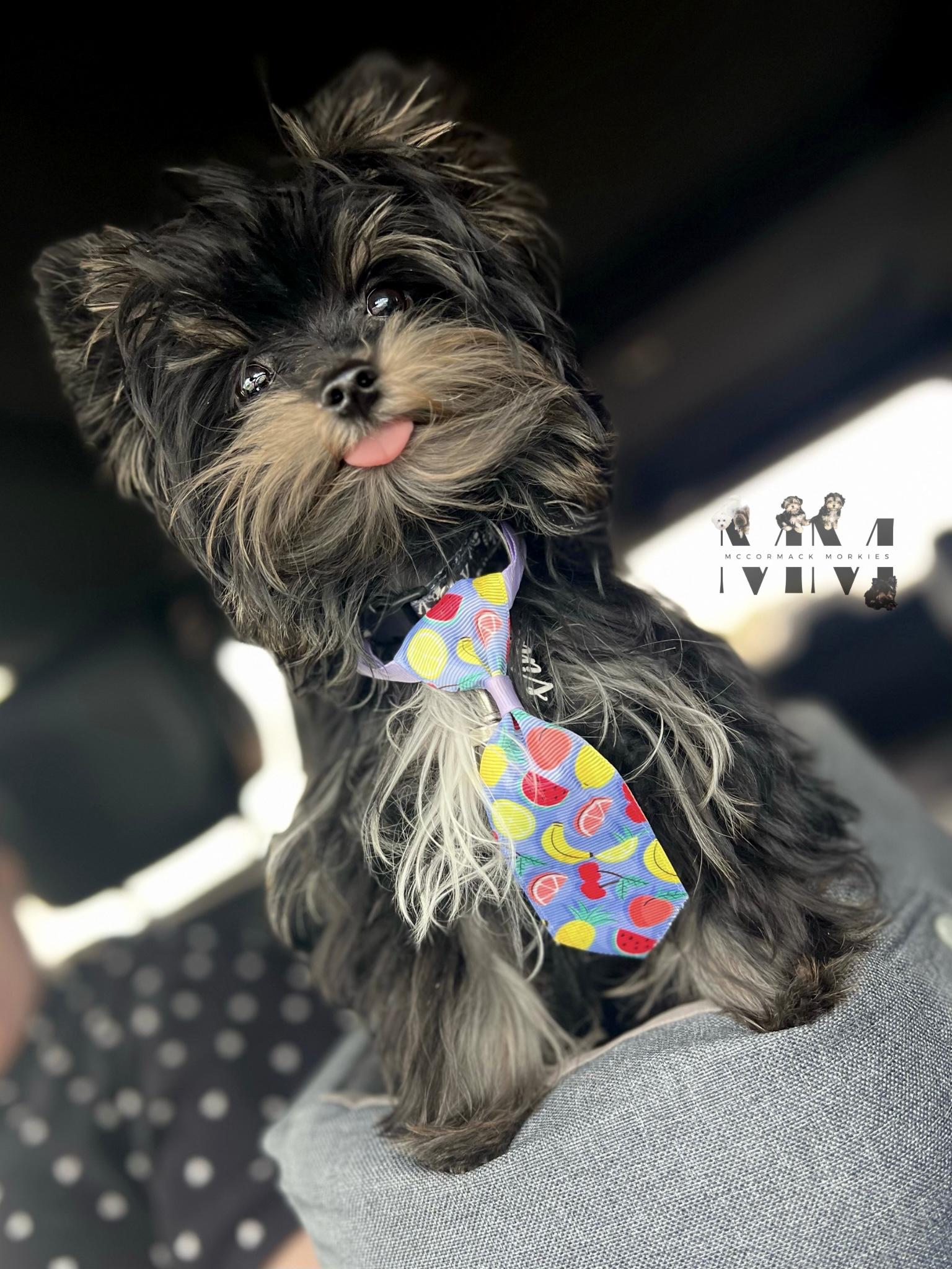 Vinnie is a rare dark traditional colored AKC registered Yorkie. He will be the sire of our litters once he matures (late 2023 or early 2024). He has the most laid back personality! We cannot wait to see his puppies one day.
