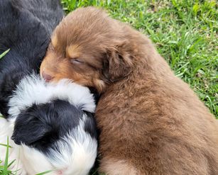 Our puppies include black, red merle, blue merle, and red. Colors will vary depending on the parent dogs.