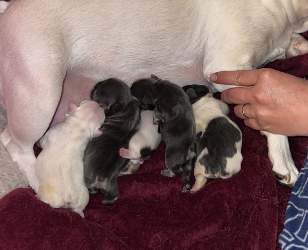 Our frenchies are have elite UK bloodlines. We are not a puppy mill nor backyard breeder. Our French bulldogs do not live in kennels or cages. They are family and share our home, yard, and anything else we have available for their needs. We only have an average of 1 liter per year, and their health is the number one priority. Our girls have produce rare color, verified through full genetics testing.