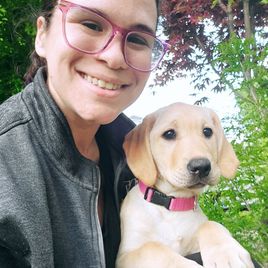 Ember is a female Labrador Retriever. Carefully selected as a great representative of her breed, Sheila decided to make her part of their program. Sheila has passed Good Dog’s screening process, which involved a review of their breeding practices, environment, and the mental and physical health of their dogs.