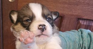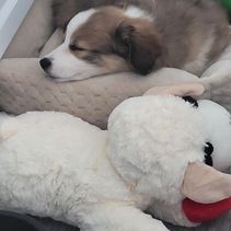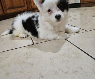Huxley is a super sweet boy. He loves to play, enjoys being outdoors, and loves the water! He has the absolute best temperament. I couldn't ask for a better dog. Huxley is an AKC/CKC triple clear, bluie affected, fluffy piebald pembroke welsh corgi.