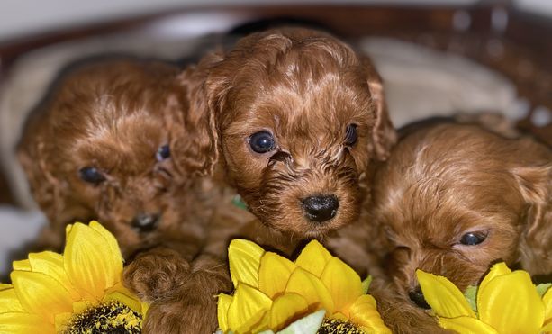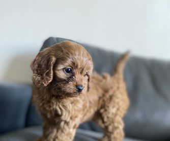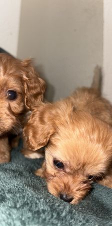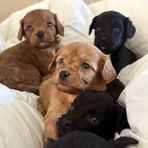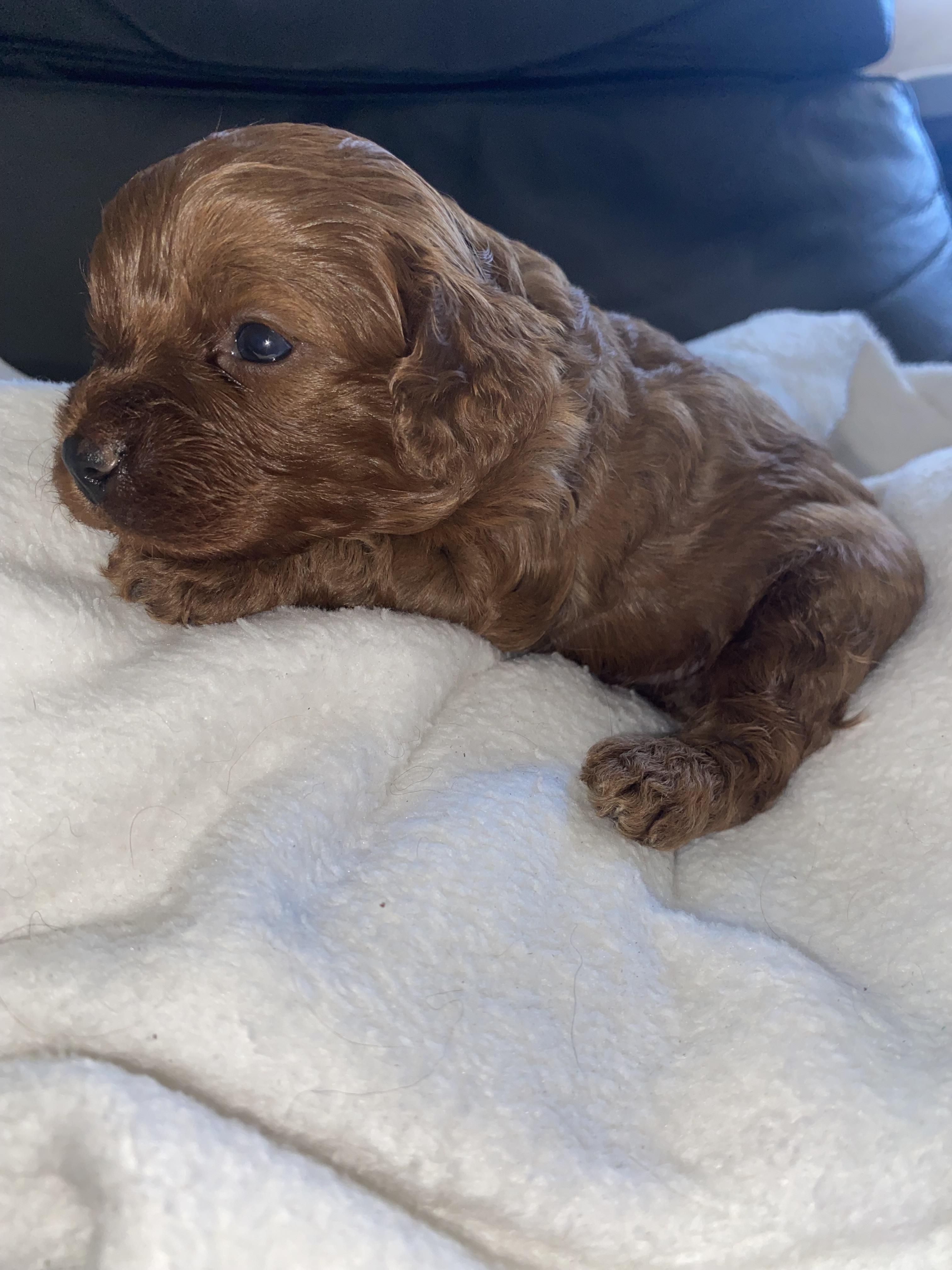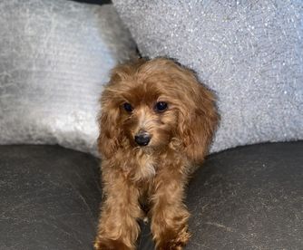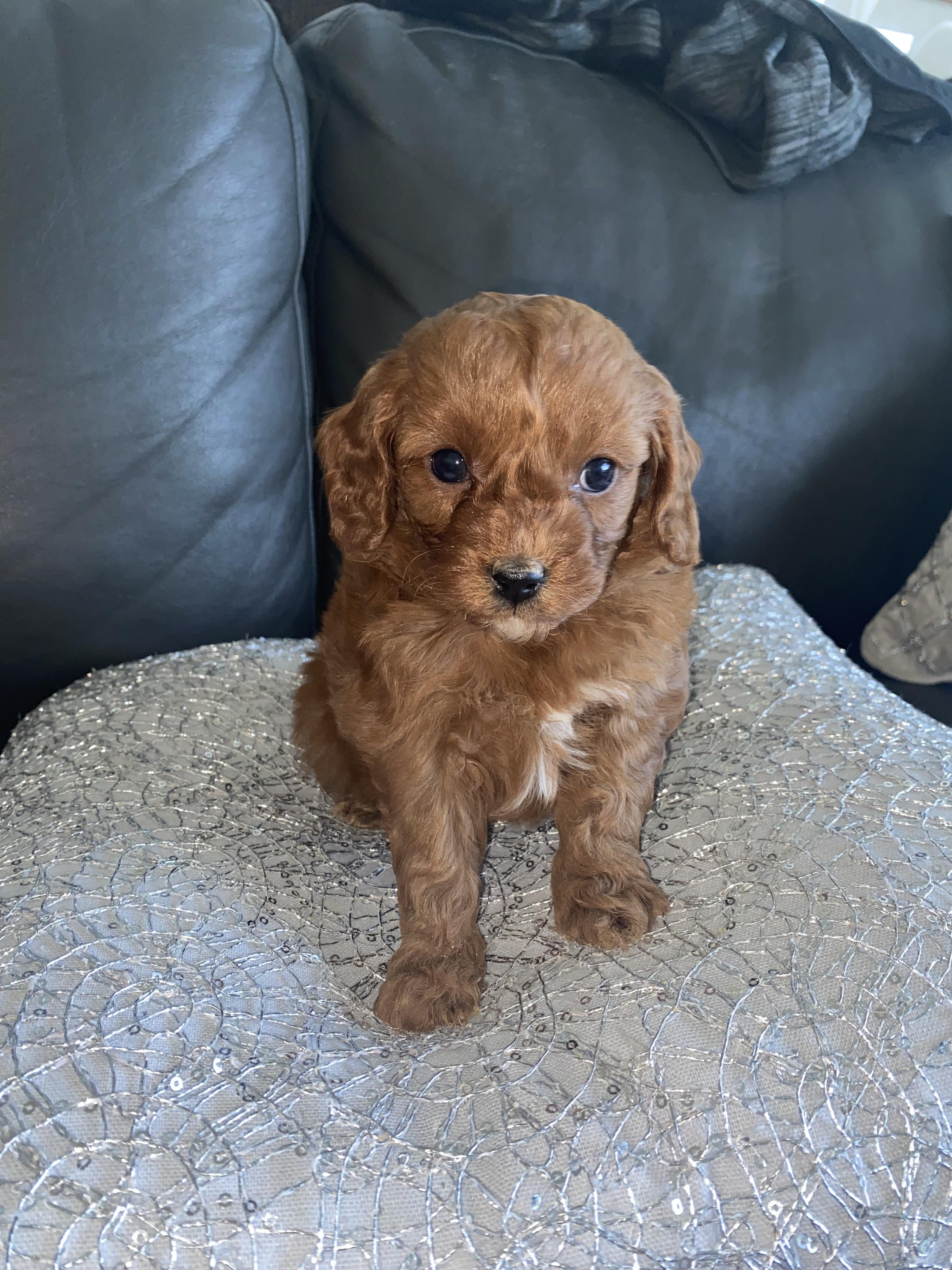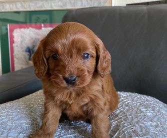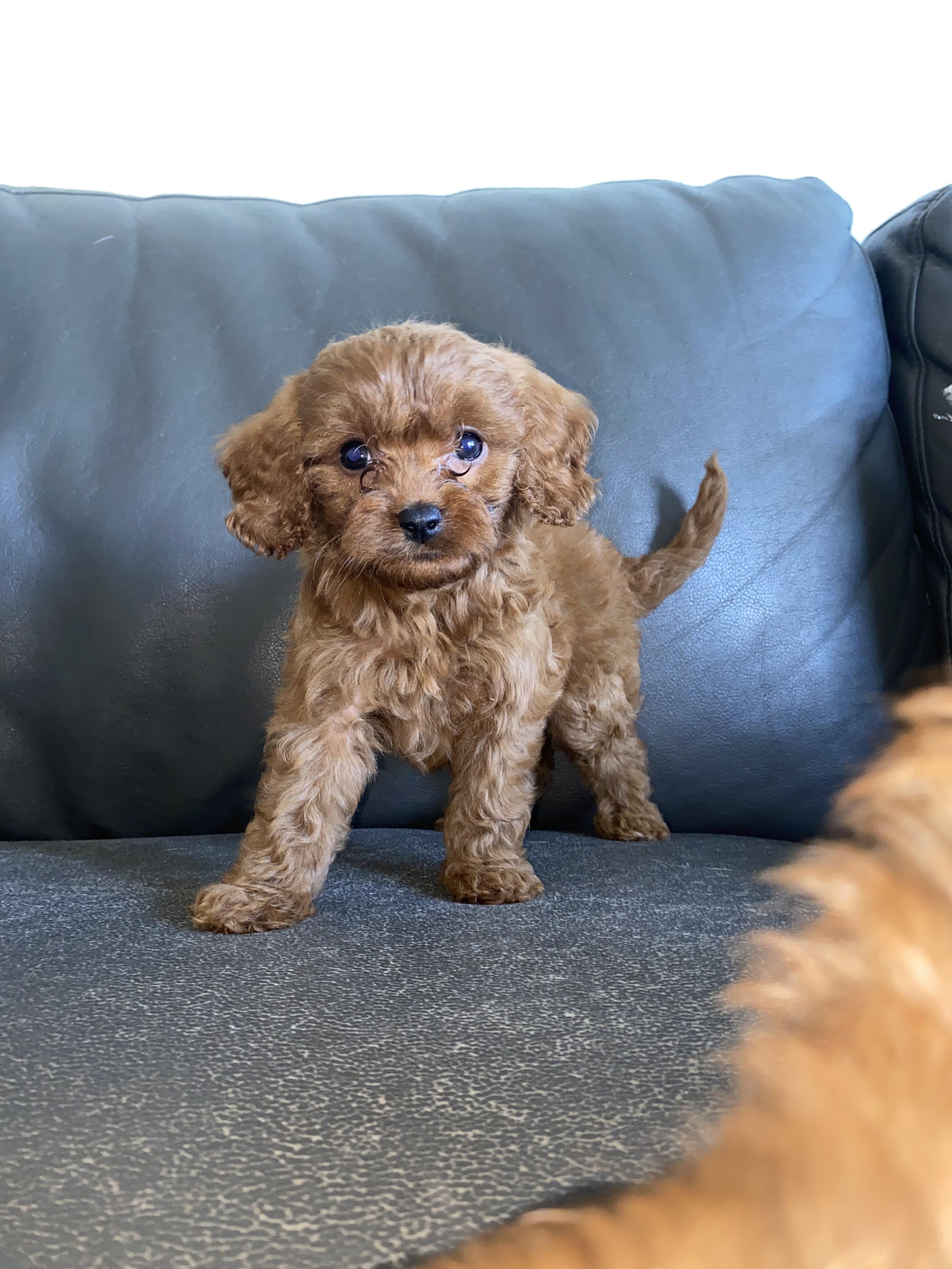 Our Poodle puppies include black and red. Cavapoo puppies are red. Colors will vary depending on the parent dogs.
