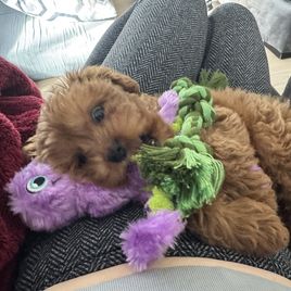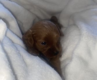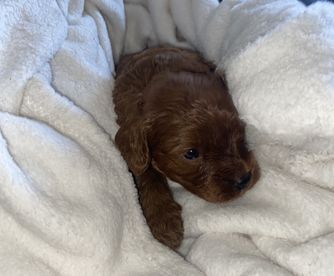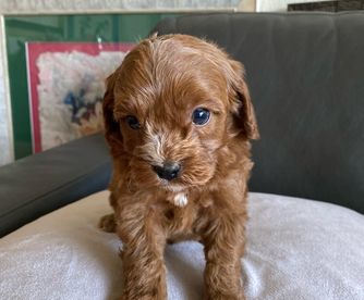 We have an adorable Cavapoo named Kenzie who is 12 weeks old. We got her around 8 weeks, and Jacob Nathaniel was so easy to work with from the beginning! They stayed in touch throughout the whole journey, FaceTiming and meeting in person. Jacob Nathaniel had Kenzie trained to sleep through the night from day 1, and she also came trained on puppy pads. They also gave me all the information/tips on what to buy for her at home. She is a smart and lovable pup and everywhere we go, people comment on how beautiful she is. I recommend this breeder to anyone interested in a Cavapoo!