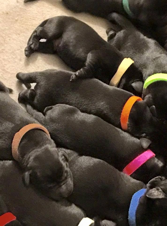 Our puppies include black and yellow. Colors will vary depending on the parent dogs.