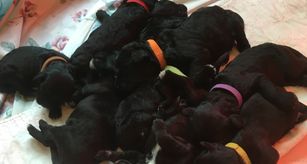 Our puppies are black. Colors will vary depending on the parent dogs.