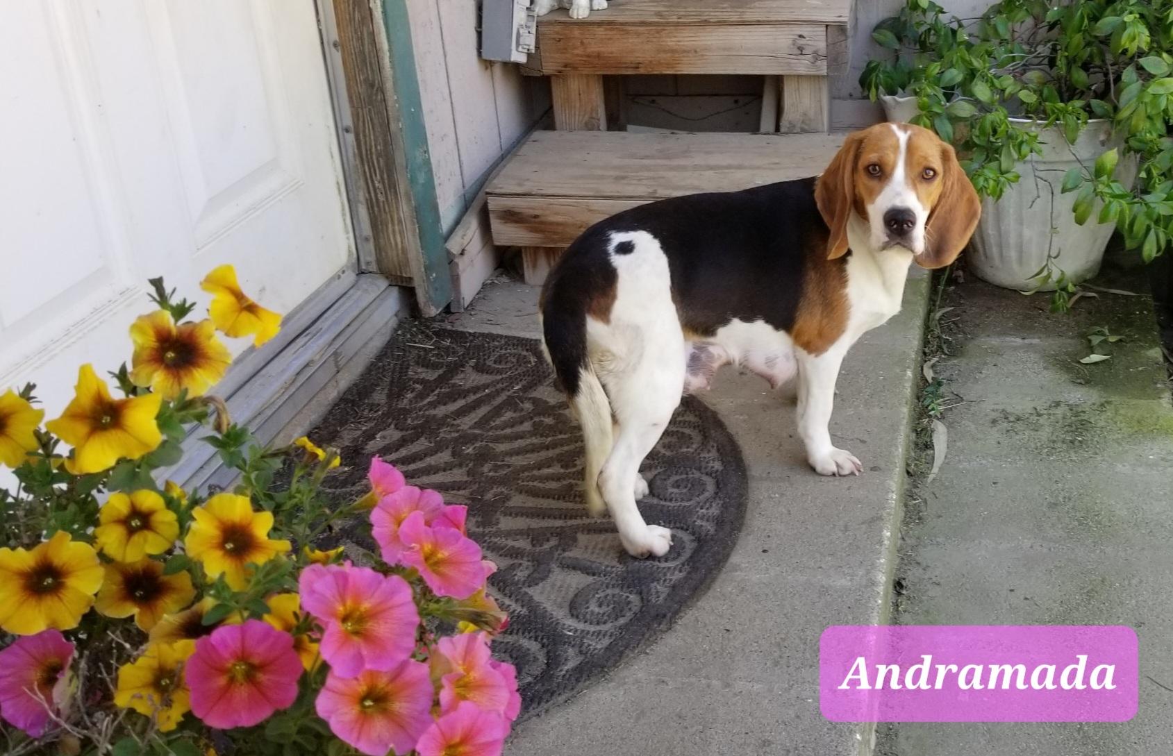 Andramada is one of our sweetest beagle mom's! She loves being a mom and taking care of her puppies. She enjoys spending time with her humans and running and playing with the other dogs. She is also our largest female so her puppies can either be 15 inch like her or 13 inch like their dad, Arthur.