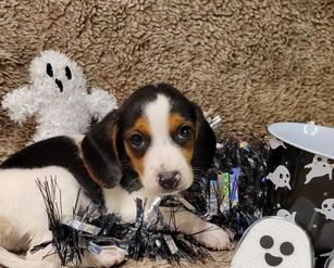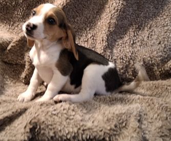 Arthur is gentle and loving. He loves to play like all beagles but his demeanor is that he is just as happy to cuddle up next to you than go play. He is great with kids and other animals and he has CKC registration.