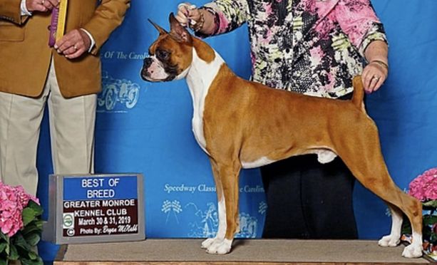 I'm Victoria M., the breeder behind MCVE BOXERS located in South Carolina. We focus on breeding healthy, high-quality Boxer puppies. We enjoy showing our dogs and care deeply about this breed. We're passionate about the wellbeing of this breed and our goal to provide each dog that comes from our program with a solid foundation of health, neurological development, and care.