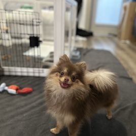 I found my puppy with Darlene of MD Bella Pomeranians when he was about 9 weeks old so he was ready! I don’t live near Darlene so I didn’t think it would be possible for me, but she walked me through the process and I met my puppy at the airport. Darlene included a generous amount in his puppy bag; she spent a significant amount of her time doing facetime with us, and she ensured everything went smoothly. I’m so happy with my new puppy-he settled in immediately and he and my other puppy have become inseparable. He’s healthy and happy!!