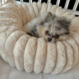 I had been searching for my dream puppy for over a year and came across her profile on Good Dog. She had a little girl with the most gorgeous Blue Merle coat I’ve ever seen. She breeds with health testing and her Pomeranians have AKC registration which was very important to me. I had high standards and Darlene checked every single box. Beautiful home with so much love for her dogs and their puppies. She is an amazing photographer so I have so many wonderful photos now of my little girl before I even brought her home!