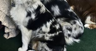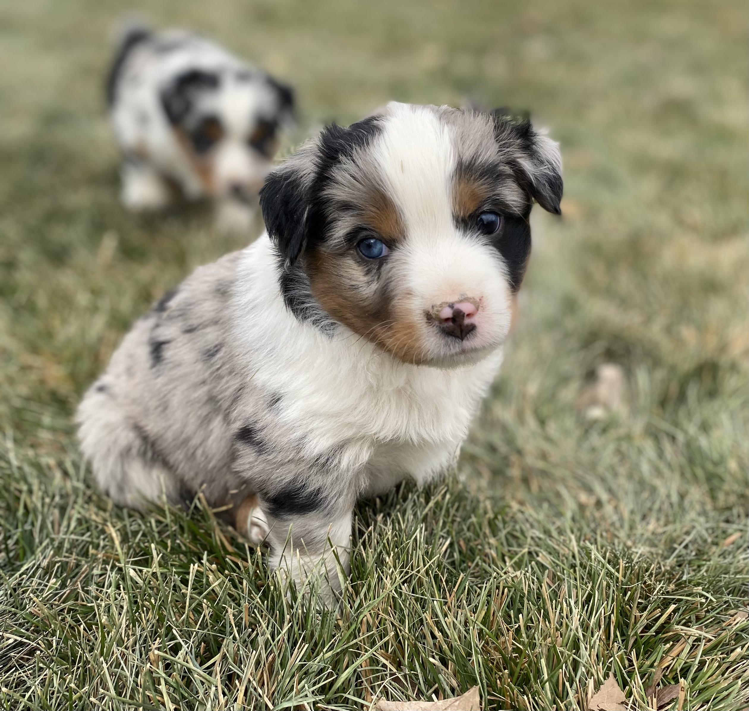 Our puppies include blue merle and red merle. Colors will vary depending on the parent dogs.