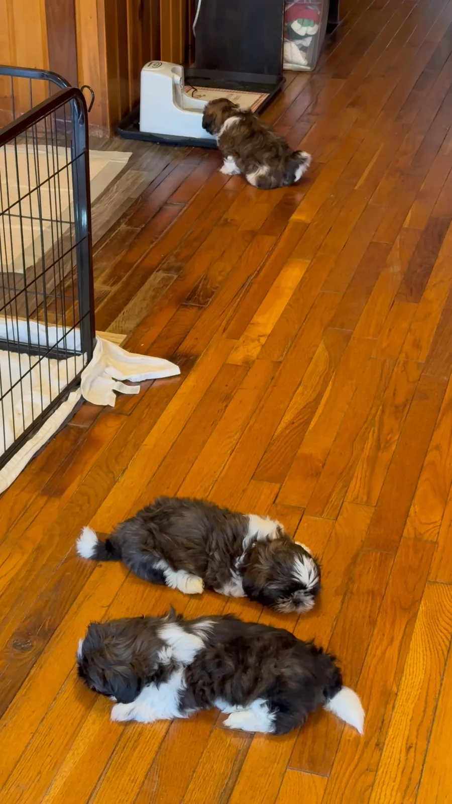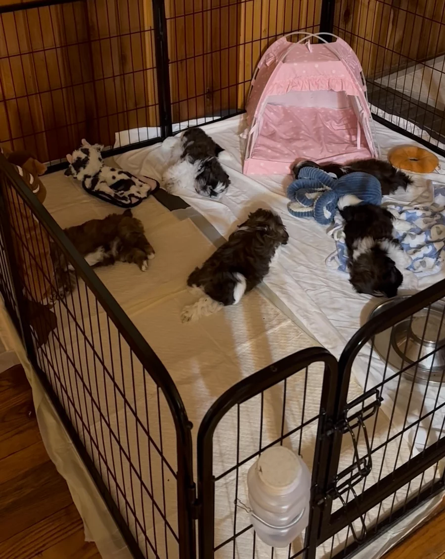 Puppies look leave almost potty trained well socialized fully vetted ready for new home but the relationship continues with us through their new family!