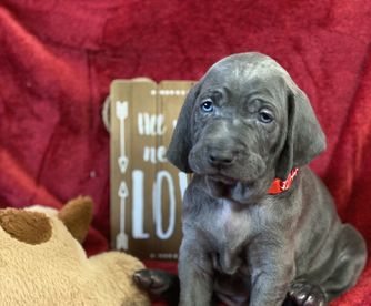 I'm Teresa S., the breeder behind Meadow Ridge Weims and Danes located in New London County, CT. I am dedicated to providing happy, healthy, and well-socialized pups for others to welcome into their family. I love my pups and know you will love them, too! My goal is to produce puppies that make wonderful companions, so I breed with a focus on health and temperament above all. I want all of my pups to live long and happy lives with their forever families!