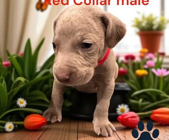 Our puppies include silver gray and blue. Colors will vary depending on the parent dogs.