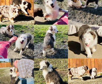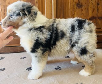 Our puppies include black, red merle, blue merle, and red. Colors will vary depending on the parent dogs.